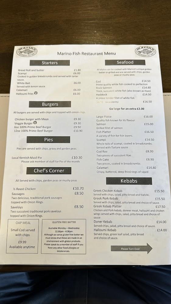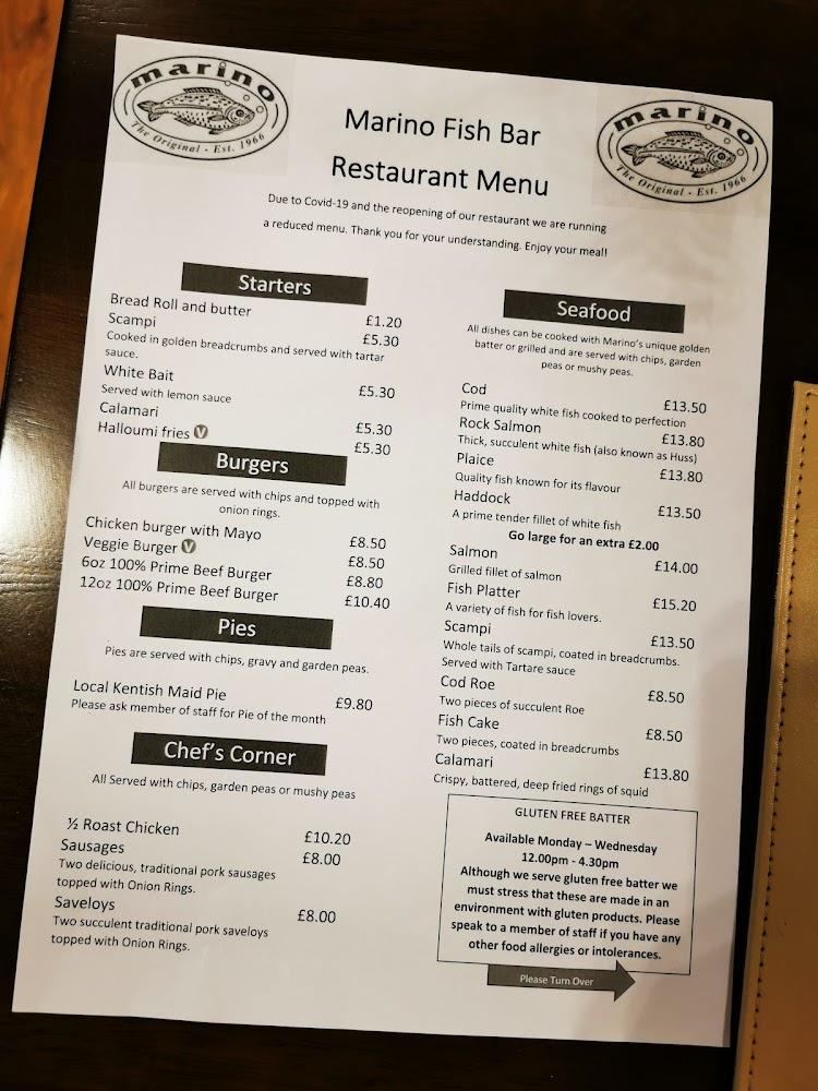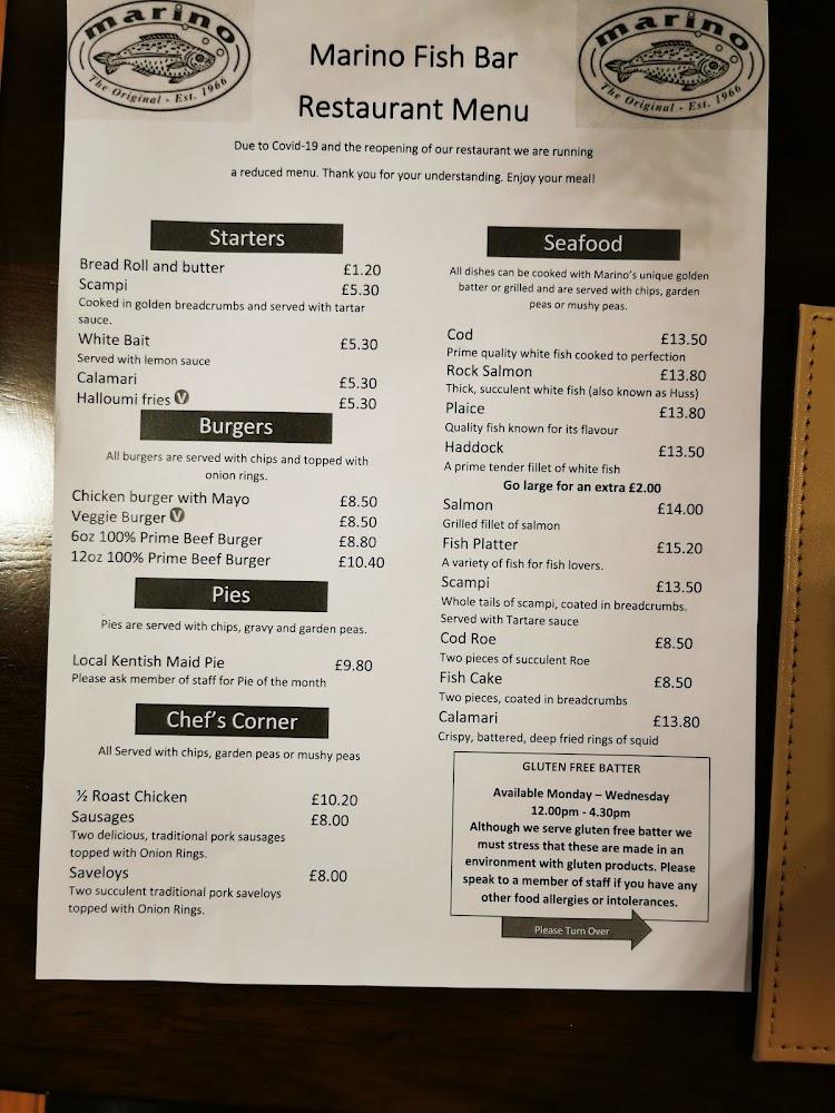 Marino Fish Bar nestles comfortably on London Road, a vital artery in Sittingbourne known for its vibrant food scene. Its warm, inviting vibe instantly makes visitors feel at home. The fish bar prides itself on using high-quality, fresh ingredients, particularly their seafood, which is delivered regularly to maintain peak freshness. Even during peak hours, the establishment remains known for its friendly service and consistently satisfying offerings. The venue is wheelchair-accessible both at the entrance and throughout, assuring a comfortable experience for all. Given its family-friendly atmosphere, Marino also accommodates kids with a special menu featuring favorites like scampi and chicken nuggets. Plenty of parking options available further enhance its appeal, both for locals and those from nearby towns. Marino Fish Bar has quickly earned a cherished spot among the area's culinary gems, making it a must-visit destination for anyone in the mood for delicious fish and chips.